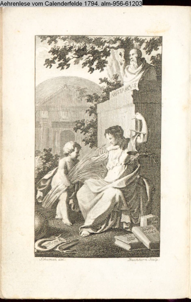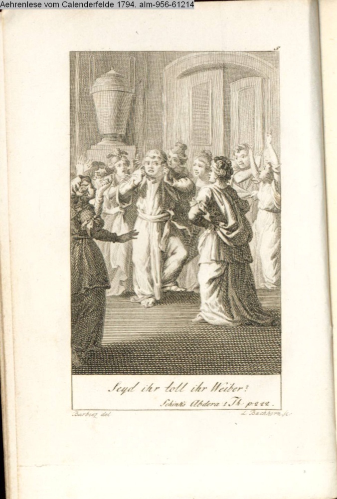 Die Graphik erstmals in: Almanach der Chroniken für das Jahr 1804. Von August von Kotzebue. Leipzig, bei Paul Gotthelf Kummer.