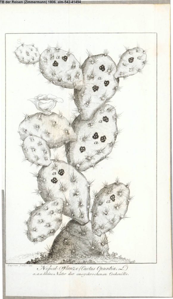 Nopal-Pflanze (Cactus Opuntia L) / a. a. a. kleine Nester der ausgekrochenen Cochenille