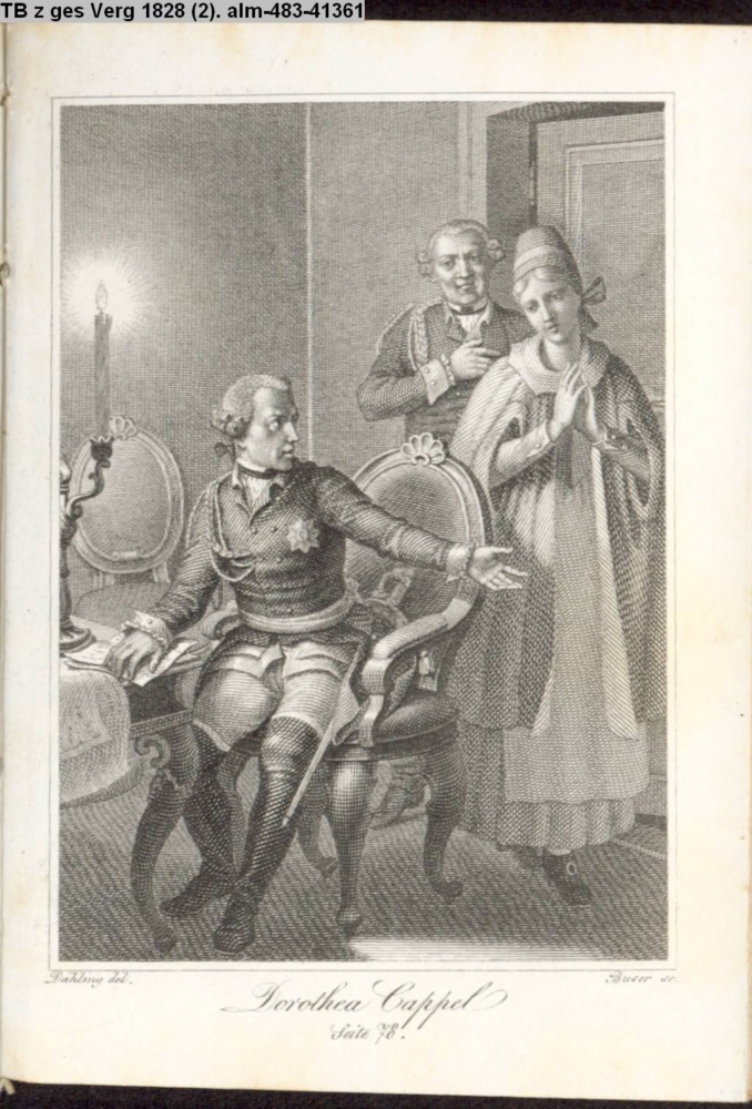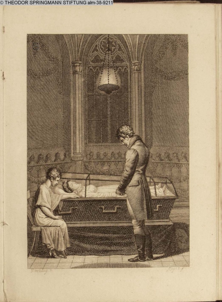 Dieses Titelportrait wurde mangels Qualität zurückgezogen; s. eingeklebte Vorbemerkung im Exemplar alm-1024: »Da das versprochene Bildniß der Höchstseligen Königin Luise von Preußen, unter den Händen des Kupferstechers verunglückt ist, so fand man für gut, es dem Taschenbuche nicht beizugeben.«...