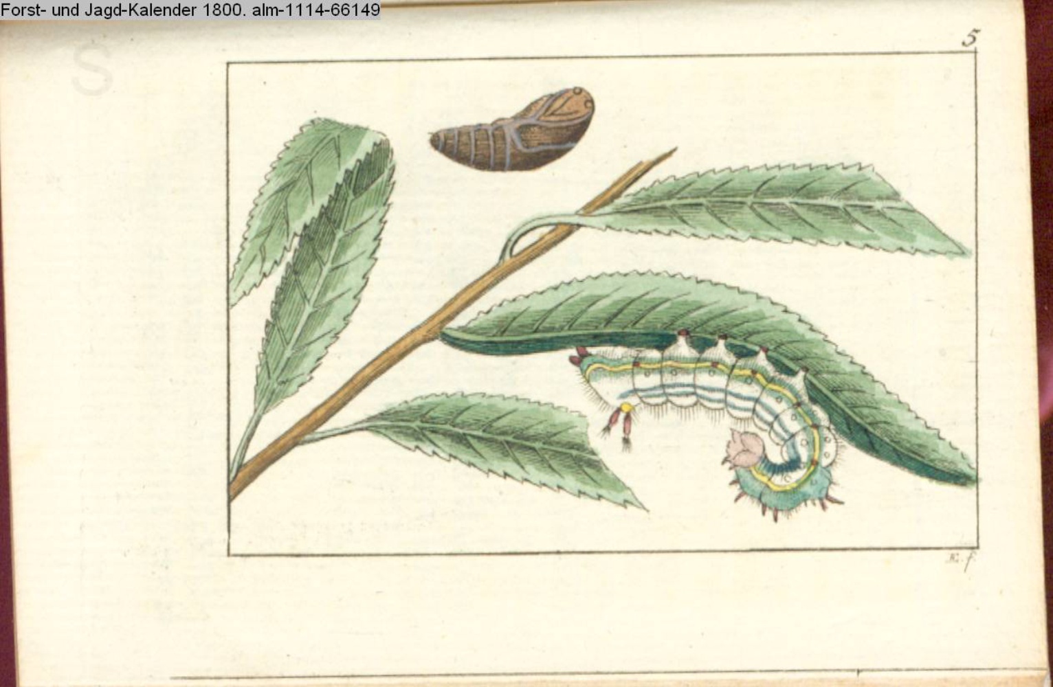 kol. Illustration zu »Naturgeschichte des Erlenspinners oder Cameelraupenspinners« INr 66147, Obj 26