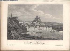 unter der Graphik: Stich und Druck durch Kunst-Verlag von Creuzbauer in Carlsruhe