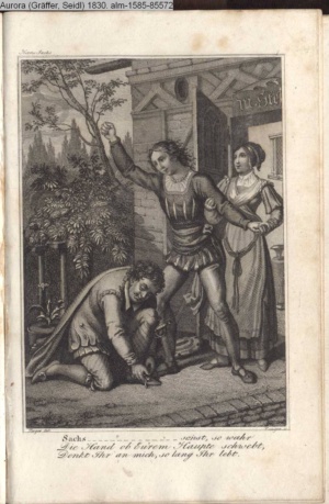 Bildliche Darstellungen zu dramatischen Werken vaterländischer Dichter. Dritte Lieferung (Sammlung INr 85571, Obj 5) Illustration zu »Hans Sachs« von Deinhardstein