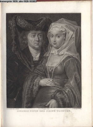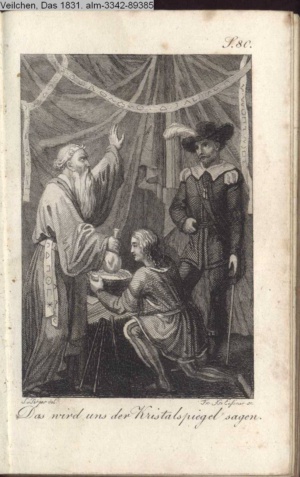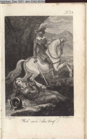 Illustration zu »Der blöde Ritter. Komisches Singspiel in einem Aufzuge. Nach Scribe« von M. Communis d.i. J. G. Seidl INr 69435, Obj 25