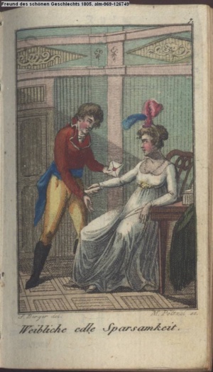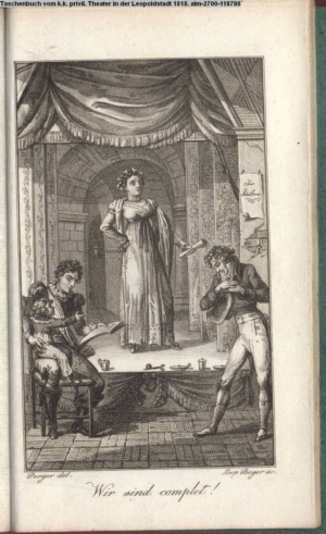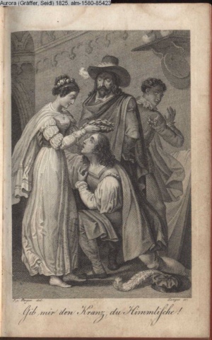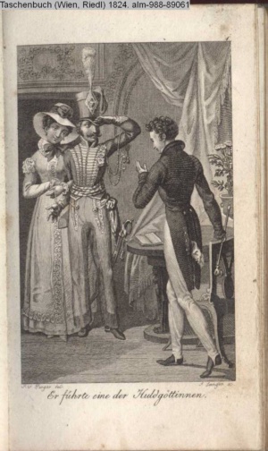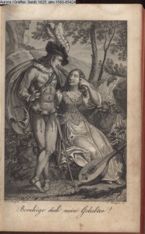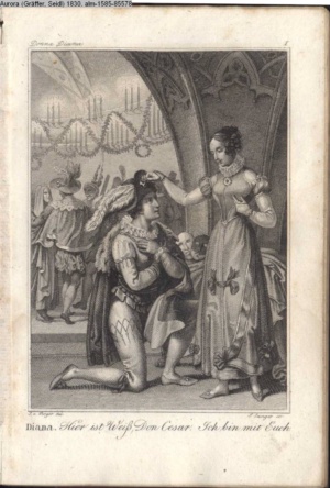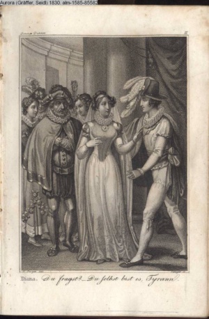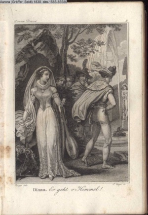 Bildliche Darstellungen zu dramatischen Werken vaterländischer Dichter. Dritte Lieferung (Sammlung INr 85571, Obj 5) Illustration zu »Donna Diana« von C. A. West d.i. A. Schreyvogel