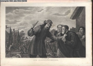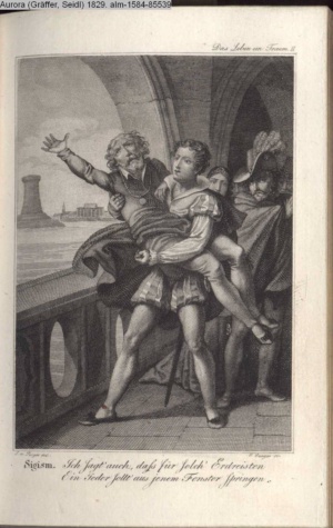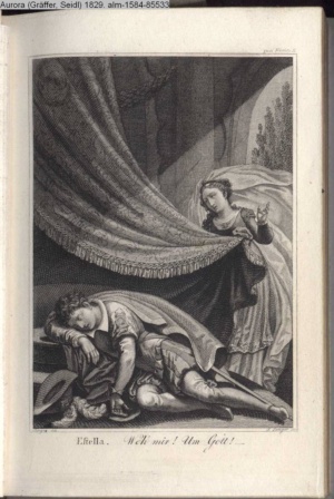 Bildliche Darstellungen zu dramatischen Werken vaterländischer Dichter. Zweite Lieferung (Sammlung INr 85530, Obj 7) Illustration zu »Zwei Nächte zu Valladolid« von J. C. v. Zedlitz
