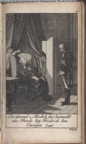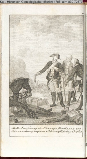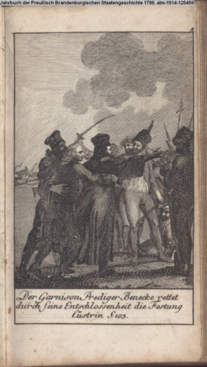 Illustration zu »Fortsetzung der Geschichte der Mark Brandenburg. Friedrich II. Dritte Abtheilung oder Geschichte des siebenjährigen Krieges. Zweite Hälfte. 1759-1763« INr 125466, Obj 19