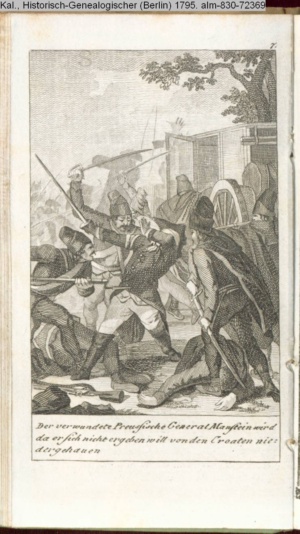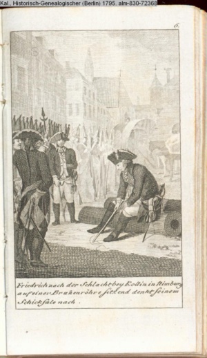 Illustration zu »Fortsetzung der Geschichte der Mark Brandenburg. Friedrich II. Zweyte Abtheilung oder Geschichte des siebenjährigen Krieges. Erste Hälfte. 1756-1759.« INr 72381, Obj 23