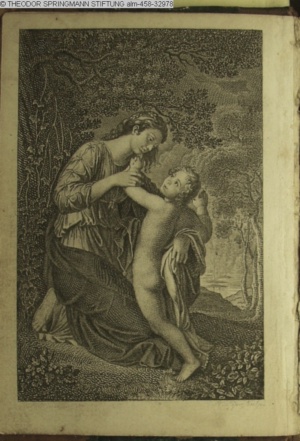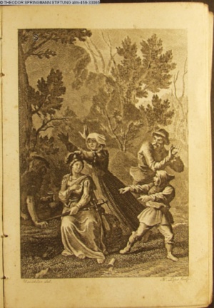 paginiert VIII. Illustration zu »Die güldene Halskette. Seitengemälde zur Rückkehr zur Spindel. Nach vorgezeichneten Kupfern. Jutta von Rosenheim« INr 50165, Obj 21