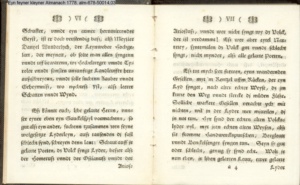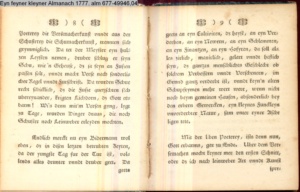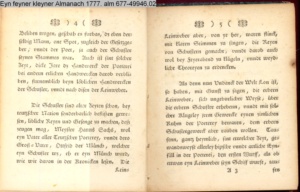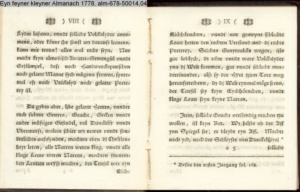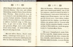 Vorwort lt. L/R 203: »Eine geistreiche Antwort auf Bürgers in seinem Aufsatz »Aus Daniel Wunderlichs Buch« enthaltene, überschwengliche Anpreisung der Volkspoesie. Die Vorreden beider Bändchen greifen Bürgers Argumente auf und treiben damit ihren Scherz. Einige der Poesien sind vortreffliche Parodien echter Volkslieder, zum Teil ist ihnen dichterischer Wert nicht abzusprechen.« s. hierzu: G. A. Bürger »Aus Daniel Wunderlichs Buch« in: Deutsches Museum 1776 1. Bd. S. 440; sowie Bürgers Reaktion auf Nicolais Almanach erstmals gedruckt in: »Aus Daniel Wunderlich's Buche. III. Zur Beherzigung an die Philosophunculos« in: G. A. Bürger's sämmtliche Werke. Herausgegeben von Karl v. Reinhard. Sechster Band. Vollendete, rechtmäßige Ausgabe. Berlin. Bei E. H. G. Christiani. 1824 S. 194-199