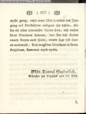 Mstr. Daniel Seuberlich Schuster zu Ritzmück ann der Elbe