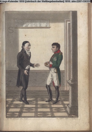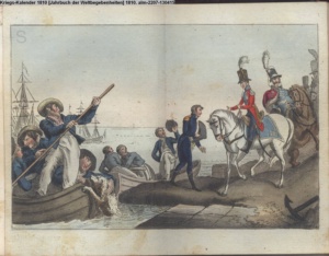 kol. Illustration zu »Anekdoten zu Friedrich der Sechste, König von Dänemark und Norwegen, Anekdote INr 130413, Obj 35 « lt. G-Verz: Friedrich VI., König von Dänemark belohnt den tapfern Seekapitain Krieger