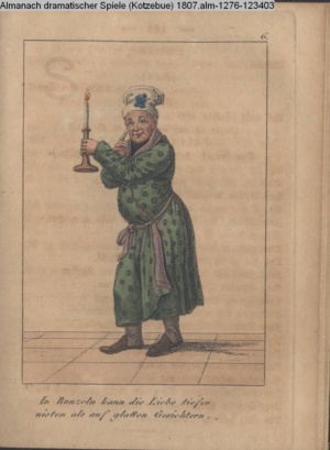 Illustration zu »Alte Zeit und neue Zeit. Ein Fragment aus den nachgelassenen Papieren der verwitweten Frau Ursula Margaretha« von Karl Friedrich Kretschmann in: Taschenbuch zum geselligen Vergnügen 1805 INr 12336