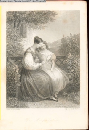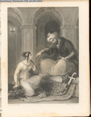 [unter der Graphik: Stich & Druck durch Kunst-Verlag in Carlsruhe]. Illustration zu »Die Braut von Abydos« von George Gordon Byron s. Textbezug INr 43859, Obj 5