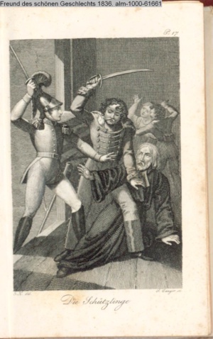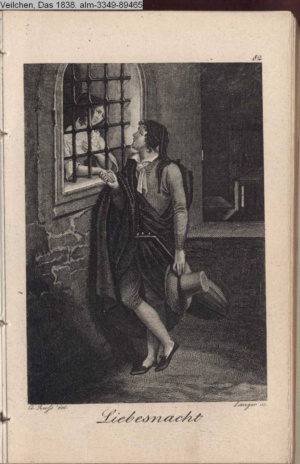 Bildliche Darstellungen zu dramatischen Werken vaterländischer Dichter. Zweite Lieferung (Sammlung INr 85530, Obj 7) Illustration zu »Zwei Nächte zu Valladolid« von J. C. v. Zedlitz