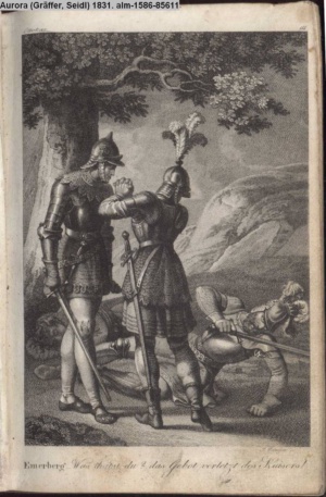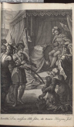 Bildliche Darstellungen zu dramatischen Werken vaterländischer Dichter. Vierte Lieferung (Sammlung INr 85606, Obj 5) Illustration zu »König Ottokars Glück und Ende« von Grillparzer