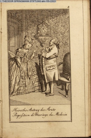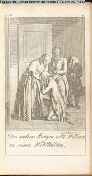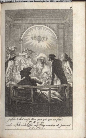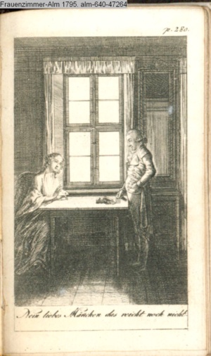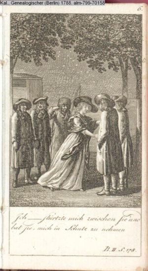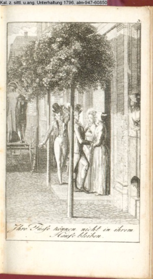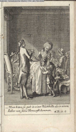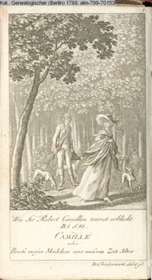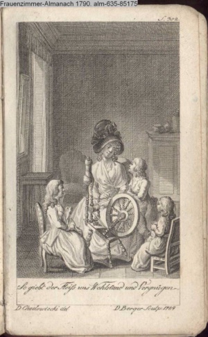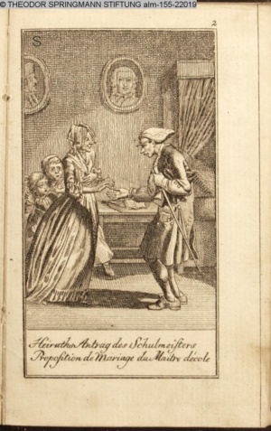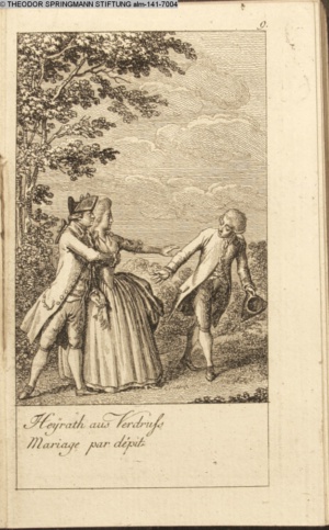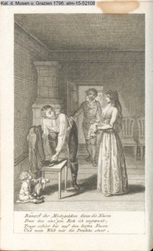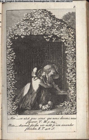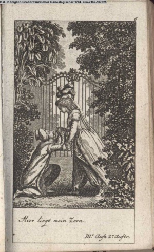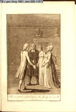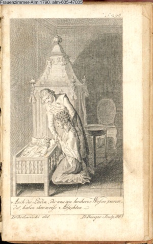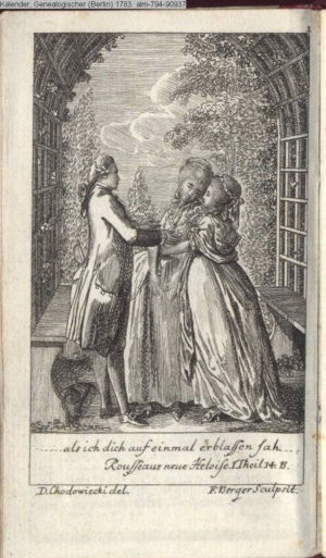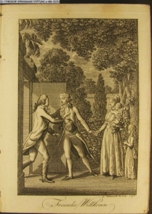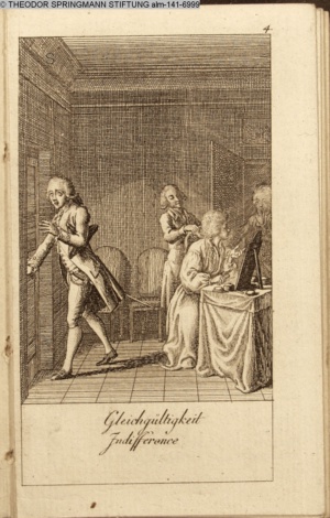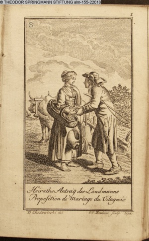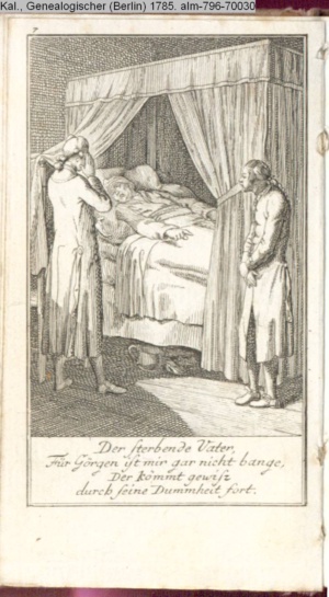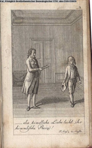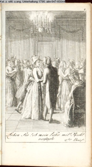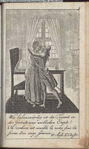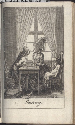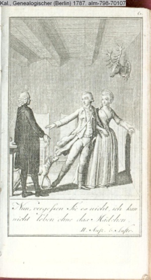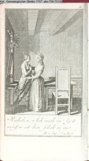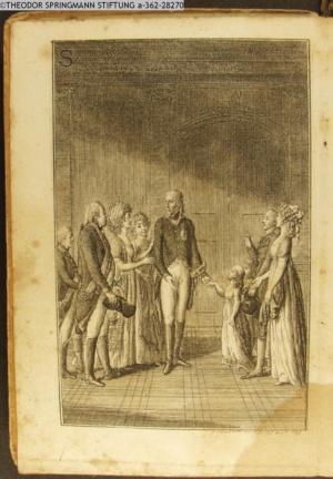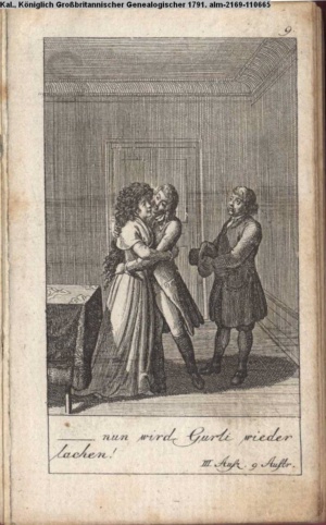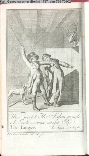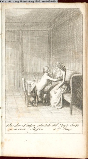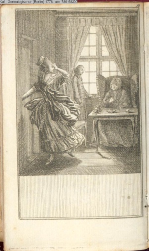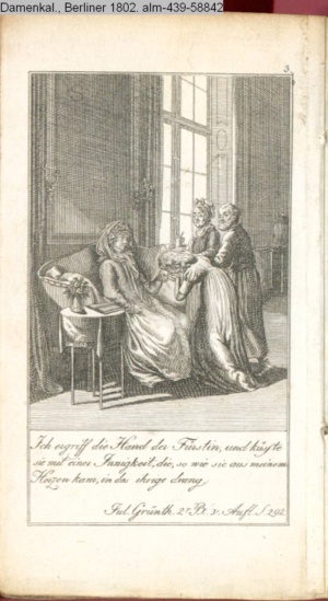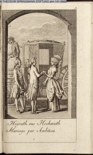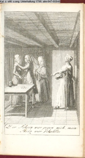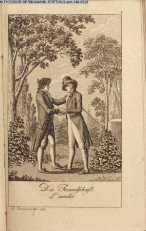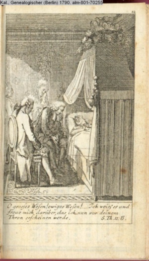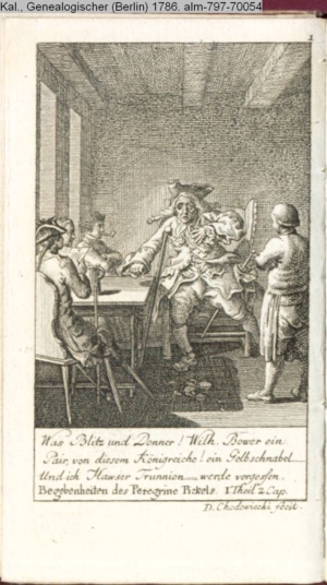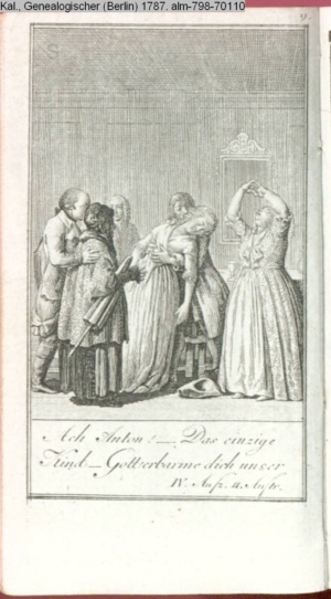 4. Blatt der uite »4 Blätter zu der Familie Hellmuth von Hiemer« von D. Chodowiecki 1798. s. BAUER, Jens-Heiner: Daniel Nikolaus Chodowiecki. Das druckgraphische Werk. Die Sammlung Wilhelm Burggraf zu Dohna-Schlobitten. Ein Bildband mit 2340 Abbildungen in Ergänzung zum Werkverzeichnis von Wilhelm Engelmann. Hannover 1982. No. 1934-1937
