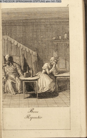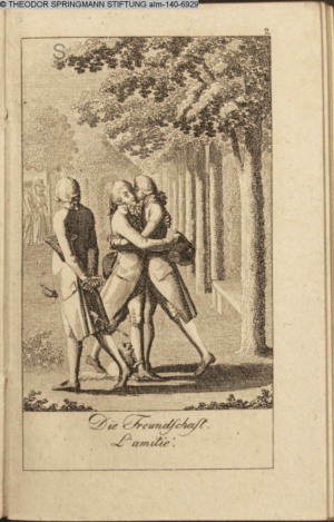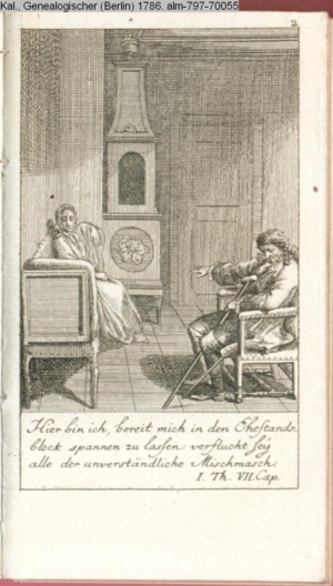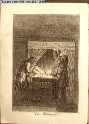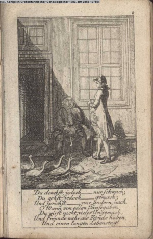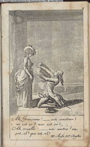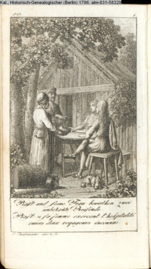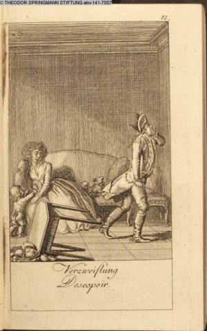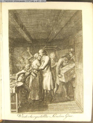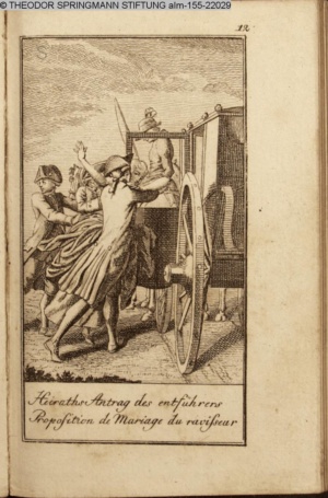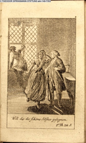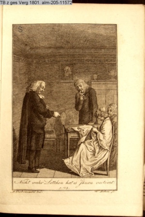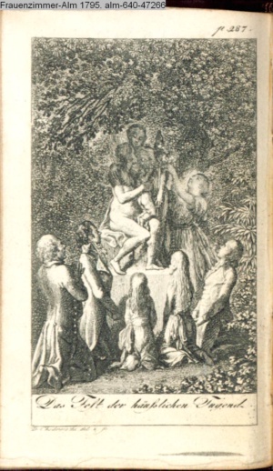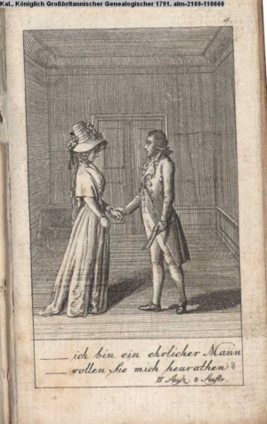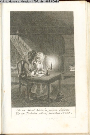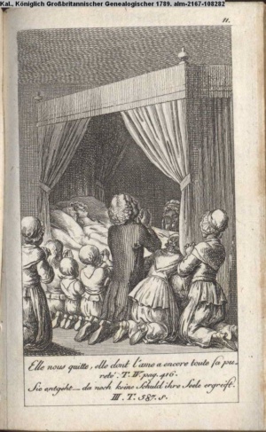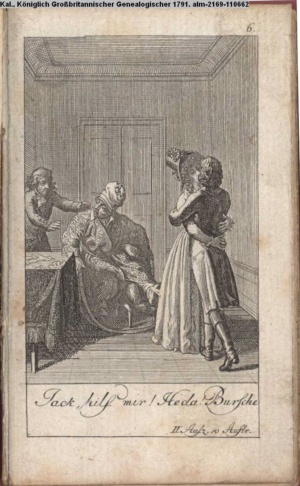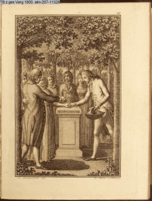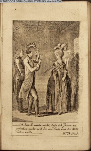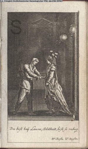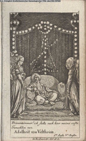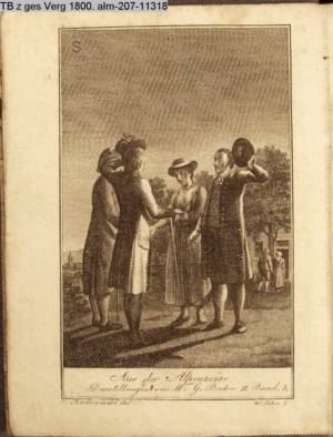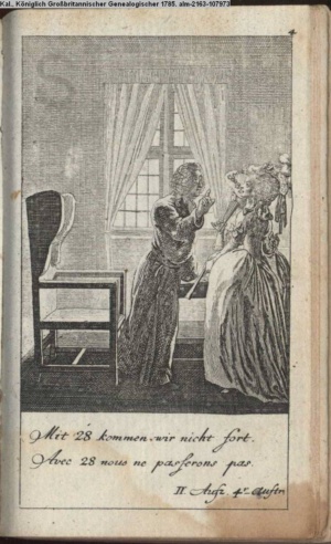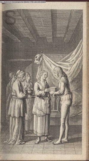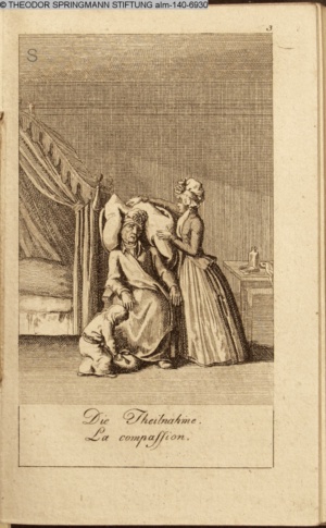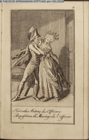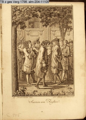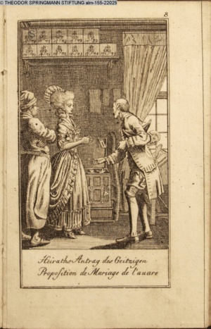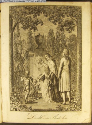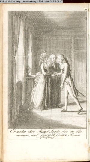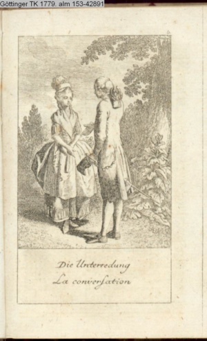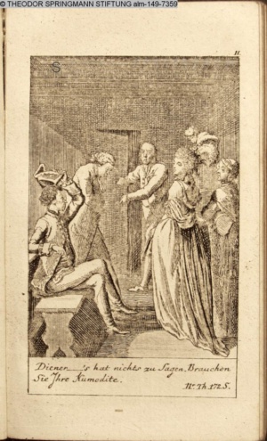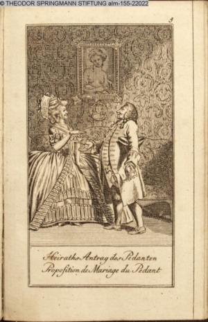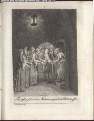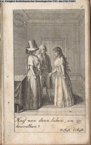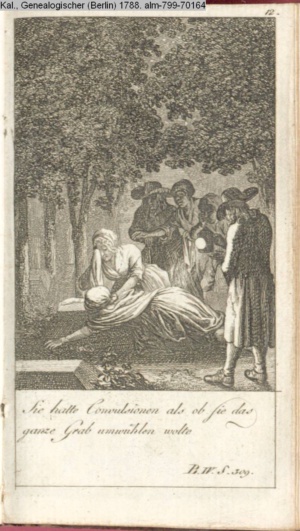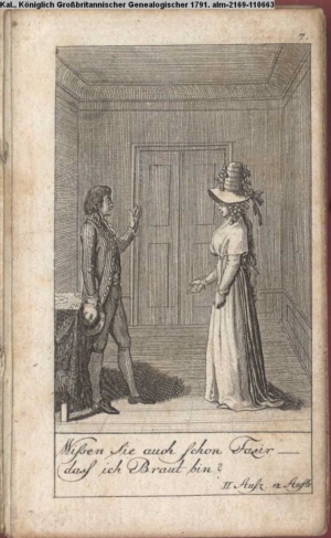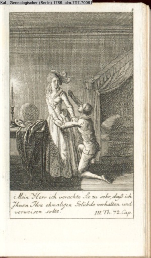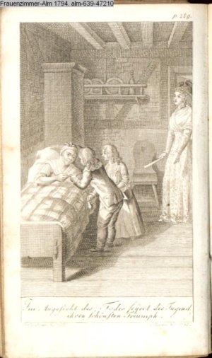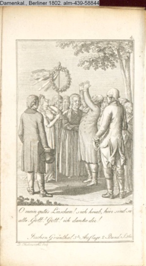4. Blatt der uite »4 Blätter zu der Familie Hellmuth von Hiemer« von D. Chodowiecki 1798. s. BAUER, Jens-Heiner: Daniel Nikolaus Chodowiecki. Das druckgraphische Werk. Die Sammlung Wilhelm Burggraf zu Dohna-Schlobitten. Ein Bildband mit 2340 Abbildungen in Ergänzung zum Werkverzeichnis von Wilhelm Engelmann. Hannover 1982. No. 1934-1937
