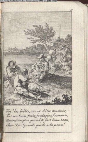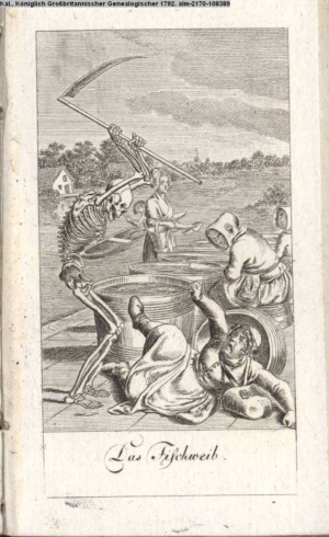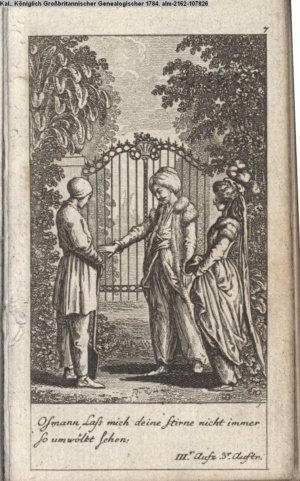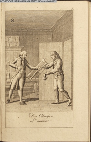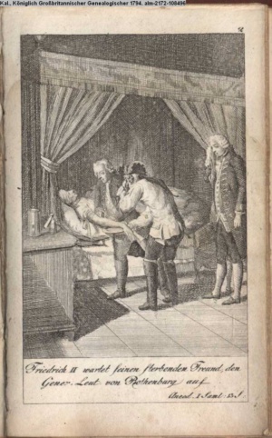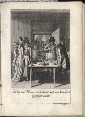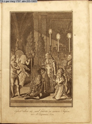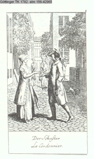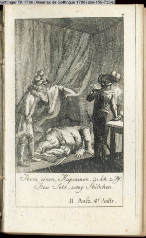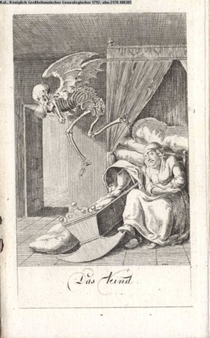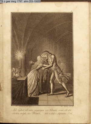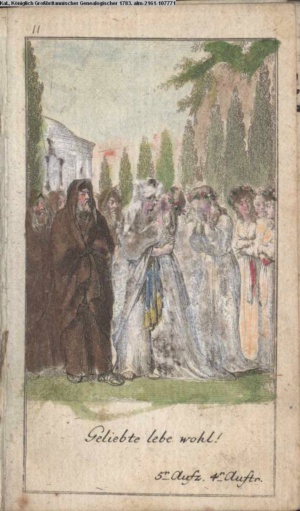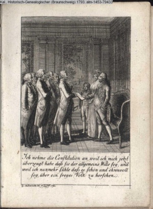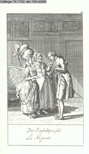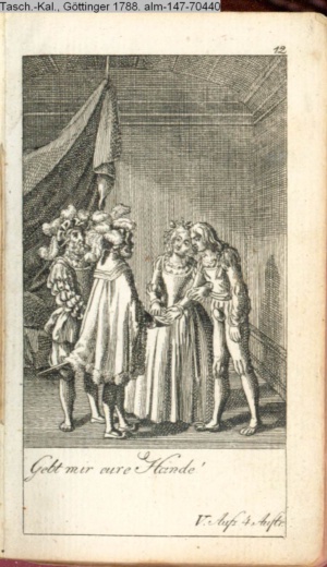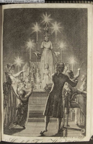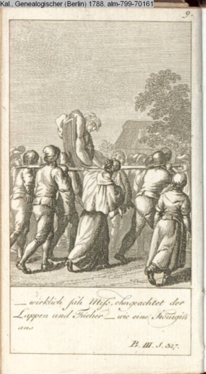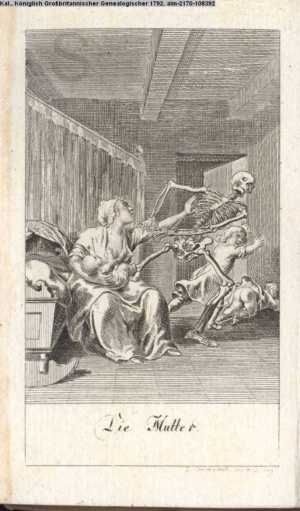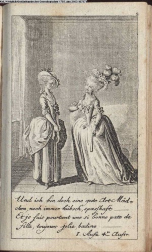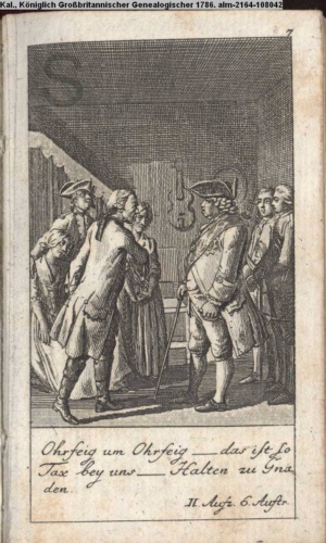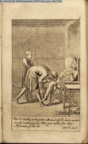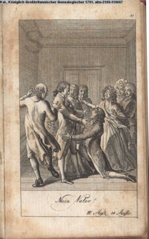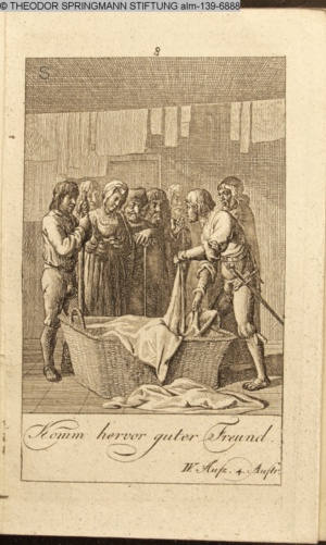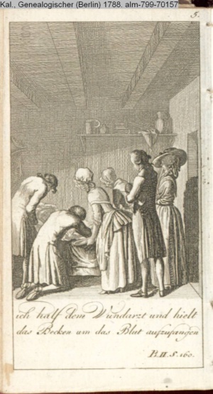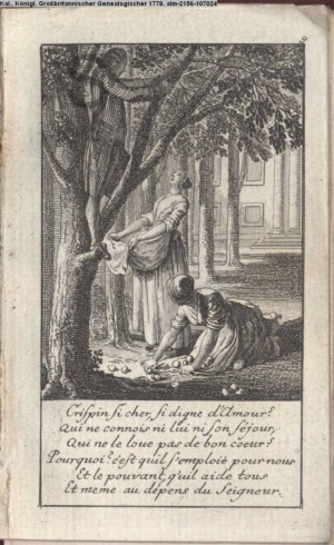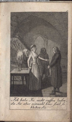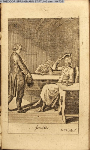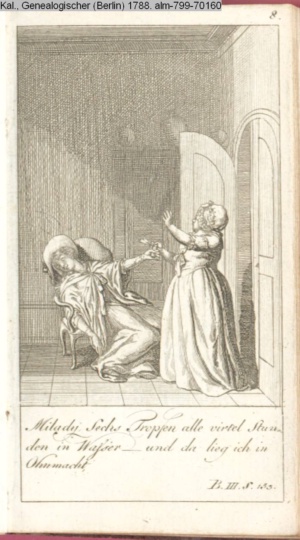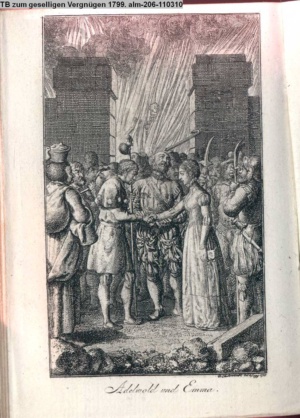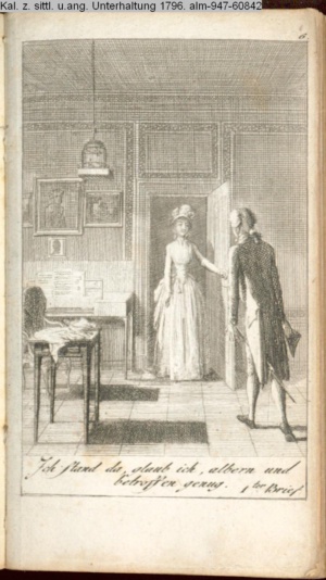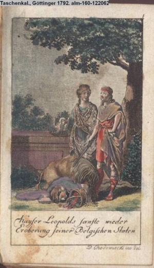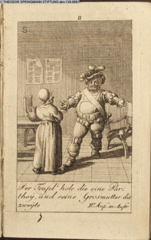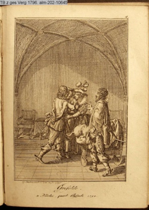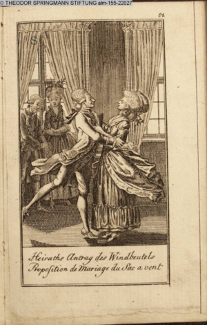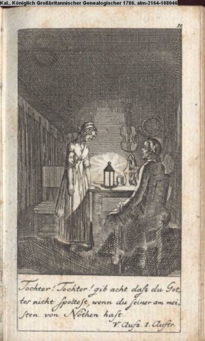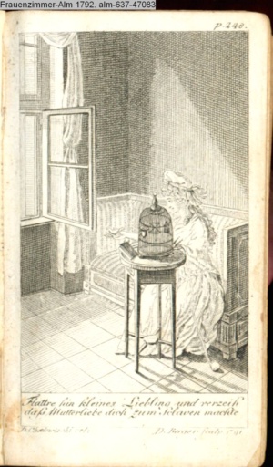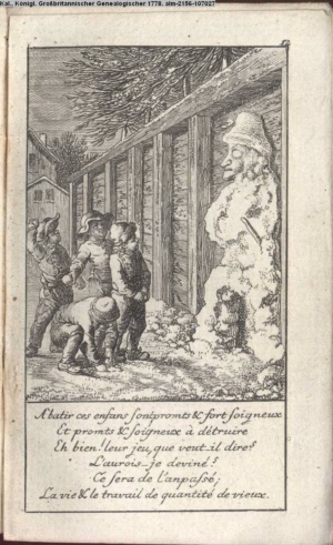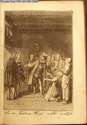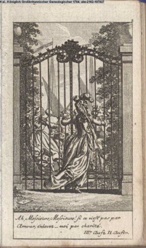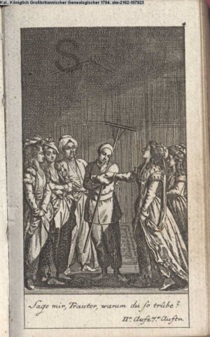 4. Blatt der uite »4 Blätter zu der Familie Hellmuth von Hiemer« von D. Chodowiecki 1798. s. BAUER, Jens-Heiner: Daniel Nikolaus Chodowiecki. Das druckgraphische Werk. Die Sammlung Wilhelm Burggraf zu Dohna-Schlobitten. Ein Bildband mit 2340 Abbildungen in Ergänzung zum Werkverzeichnis von Wilhelm Engelmann. Hannover 1982. No. 1934-1937