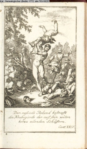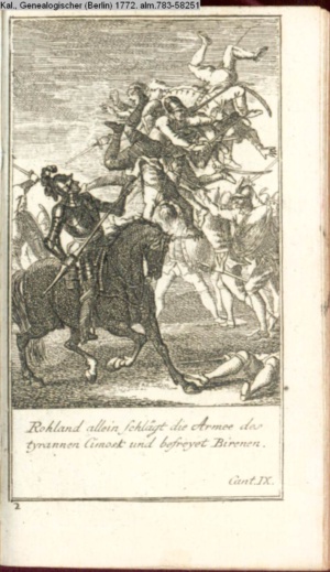 Rohland allein schlägt die Armee des / Tyrannen Cimosk und befreyet Birenen. / Cant IX.