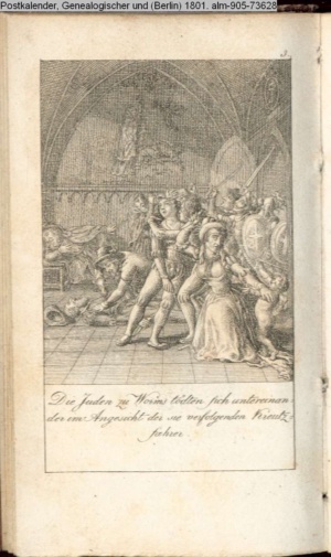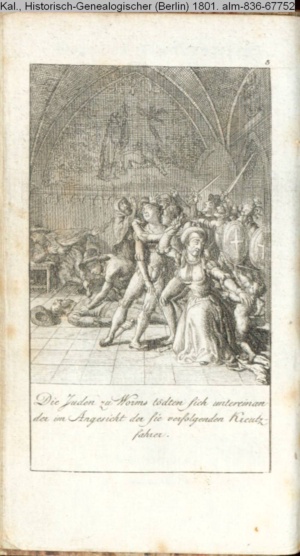 Die Juden zu Worms tödten sich untereinan- / der im Angesicht der sie verfolgenden Kreutz- / fahrer