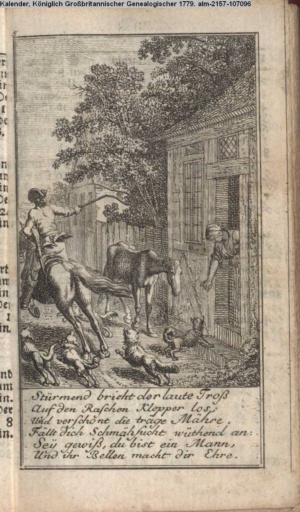 Kommt nur hier neben mir, und fasst / meinen Steigriemen an / p. 41