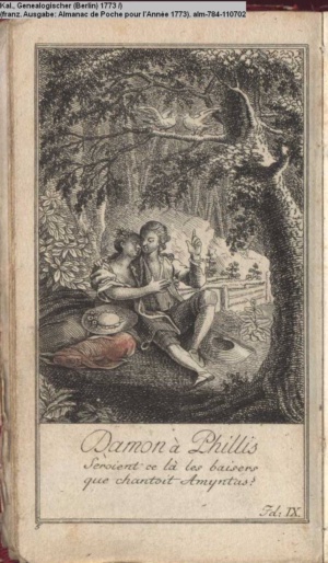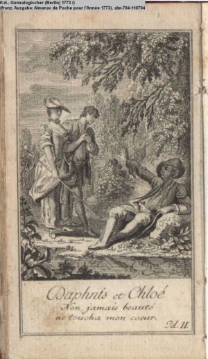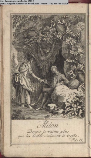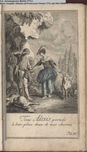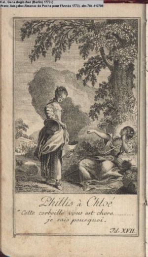 Kalender, Genealogischer (Berlin) 1773 (franz. Ausgabe: Almanac de Poche pour l’Année 1773)