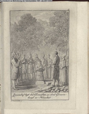 Zinzendorf legt den Grundstein zu dem Gemein- / hause in Herrenhut