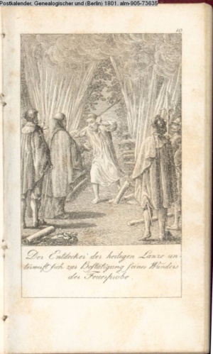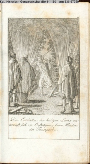 Der Entdecker der heiligen Lanze unter- / wirft sich zur Bestätigung seines Wunders / der Feuerprobe