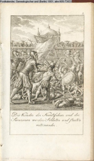 Die Kinder der Kreutzfahrer und der / Sarazenen werden Soldaten und streiten / miteinander