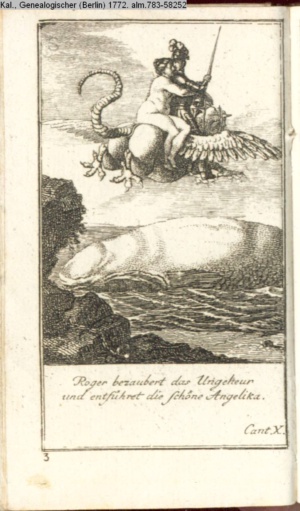 Roger bezaubert das Ungeheuer / und entführet die schöne Angelika. / Cant. X.