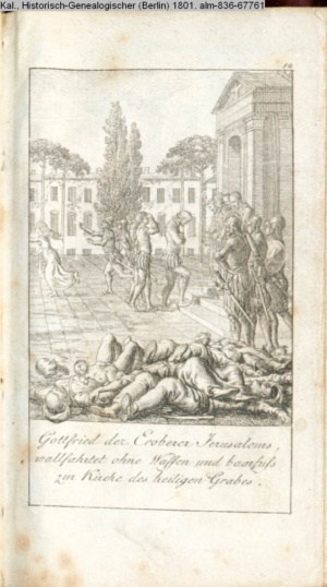 Gottfried der Eroberer Jerusalems / wallfahret ohne Waffen und baarfuß / zur Kirche des heiligen Grabes