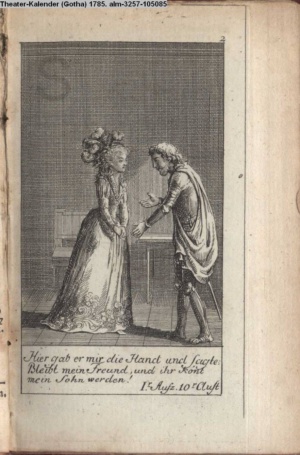 Die geneigte Frau von Ritter Vanburgh. / Herr GARRIK als Ritter BRUTE. / So wie gefällt Ihnen meine Taille nun-?