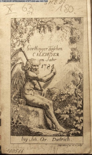 Goettinger Taschen / CALENDER / vom Jahr / 1784 / bey Joh. Chr. Dietrich