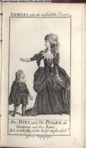ISABELLA oder die unglückliche Heurat / Mme. YATES und Hr. PULLEN als / ISABELLA und das KIND. / Isab: wahrhaftig, ich bin höchst unglücklich!