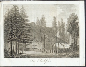 Illustration zu »Beschreibung des Gartens in Hohenheim. Dritte Fortsetzung. / Der Backofen« von G. H. Rapp