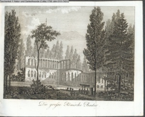 Illustration zu »Beschreibung des Gartens in Hohenheim. Dritte Fortsetzung. / Die großen Bäder« von G. H. Rapp