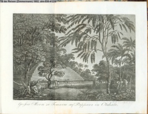 Unter dem Banianen Baum opfert der Cochinchinese dem Gotte Fa die ersten Früchte