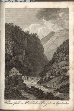 Wasserfall u. Mühle bei Ragatz in Graubündten