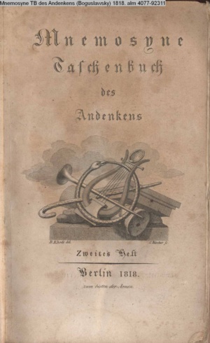 Mnemosyne Taschenbuch des Andenkens (Boguslawski) 1818