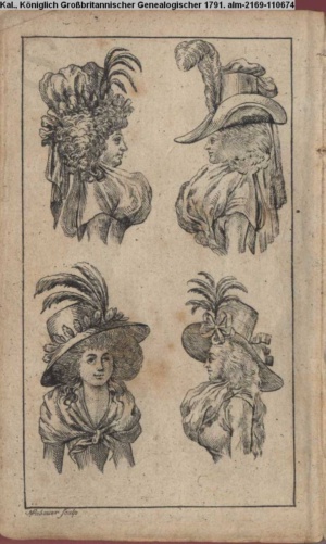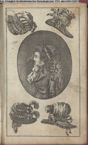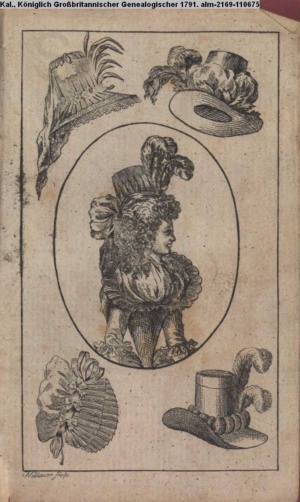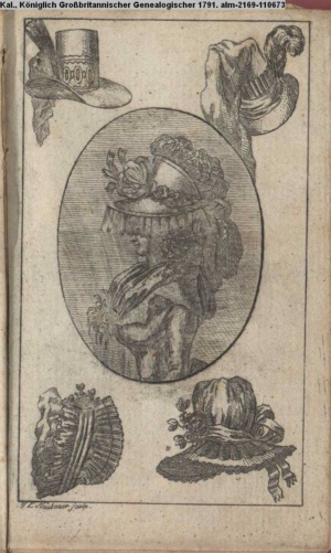 Königl. Grosbritannischer / Historischer / Genealogischer / CALENDER / für / 1791. / mit Kupfern von Chodowiecki / in gemeinschaftlichem Verlag / von Berenberg im Lauenburg / und / der Jägerische Buchhandlung / in Frankfurt a/m