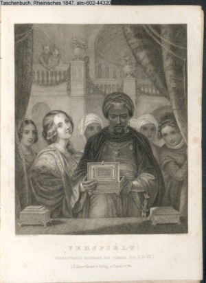 [unter der Graphik: J. D. Sauerländer Verlag in Frankfurt a/m.] Illustration zu »Der Kaufmann von Venedig« von W. Shakespeare s. Textbezug INr 44319, Obj 19