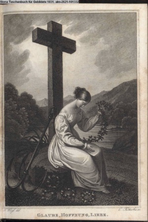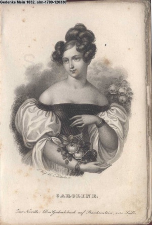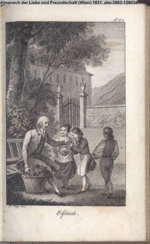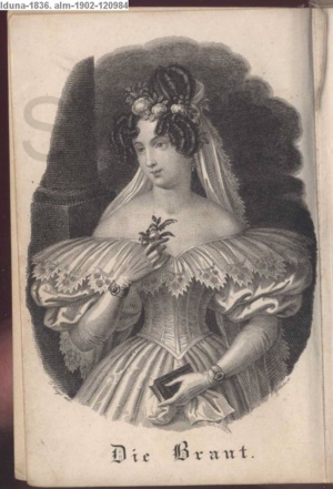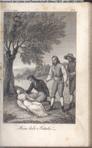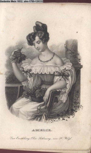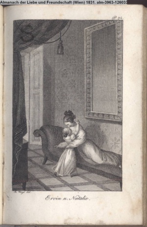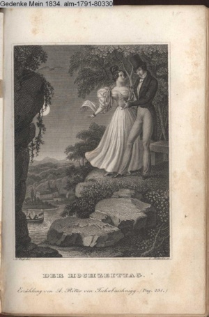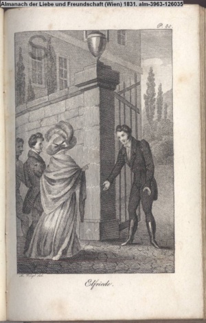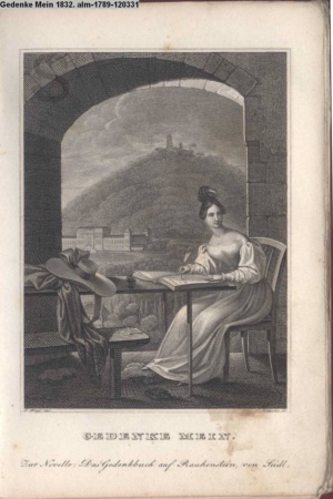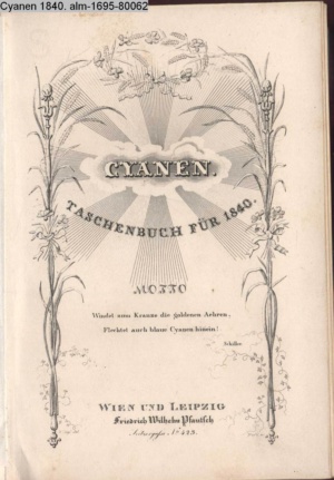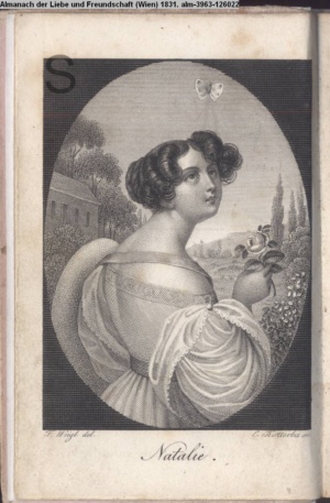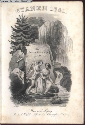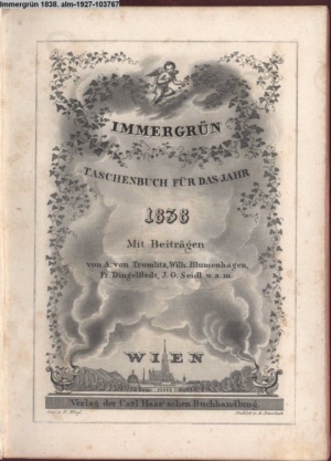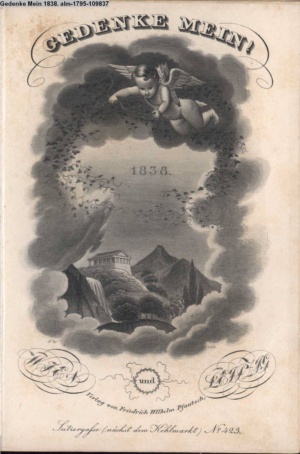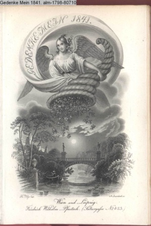 Die Graphik aus der Titelauflage: Taschenbuch für das Jahr 1842 Wien, bei Franz Riedl's sel. Wittwe & Sohn, k.k. Hofbuchbinder, Schottenhof No. 196