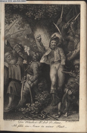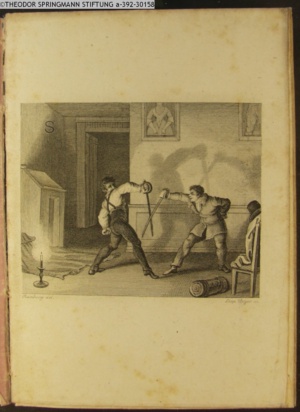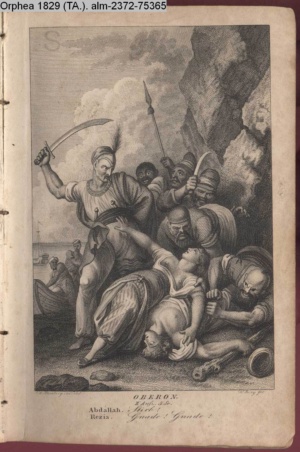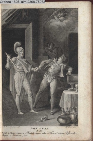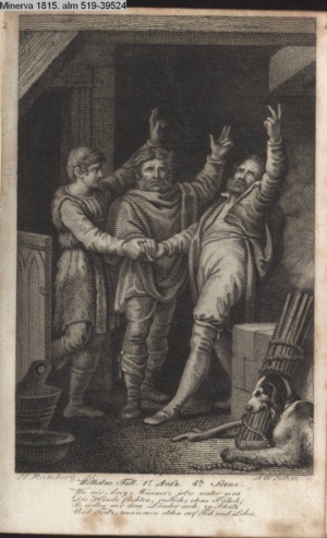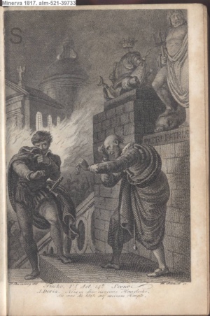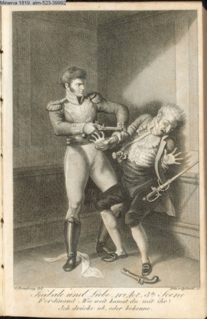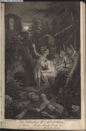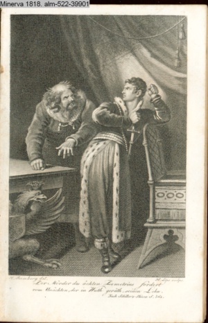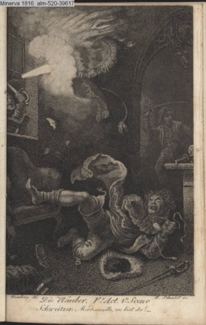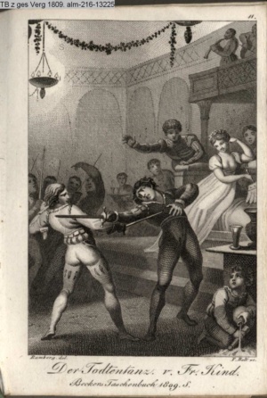 DER VAMPYR. / I. Aufz. 6. Sc. / Berkley. Frecher Räuber meines Kindes! / Hier nimm Deiner Thaten Lohn.