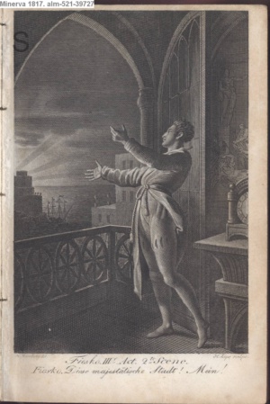 DER VAMPYR. / I. Aufz. 8. Sc. / Aubrey stürzt ab- Der Mond scheint hell in Ruthwen's / blasses Antlitz