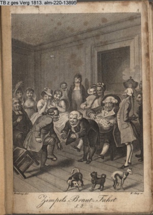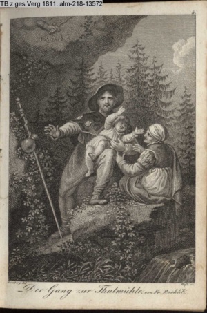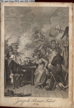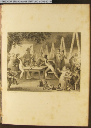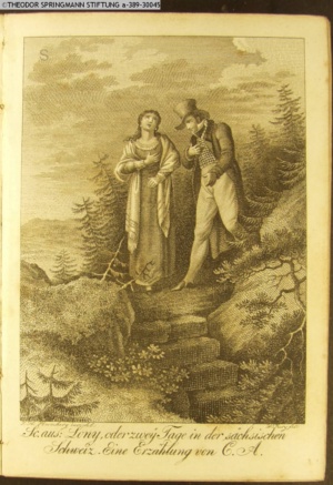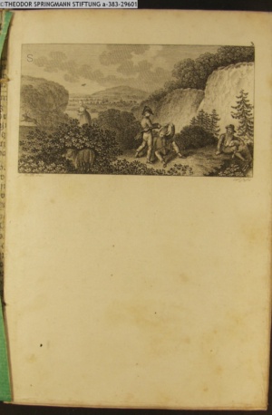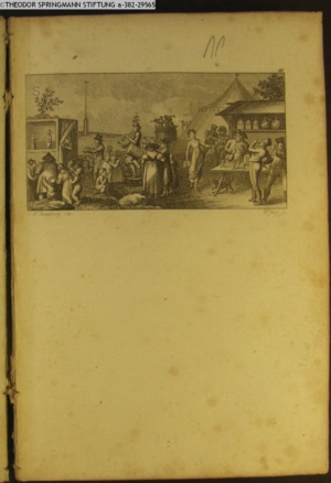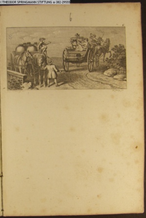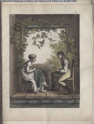 Nummerierung II.; auszufaltende kol. Illustration zu »Abentheuerliche Wanderung von Weimar nach Carlsbad« von St. Schütze