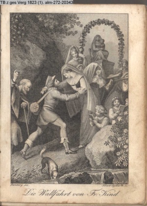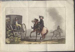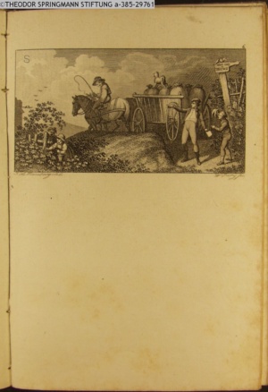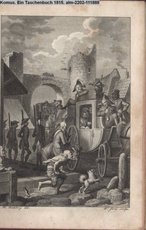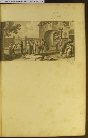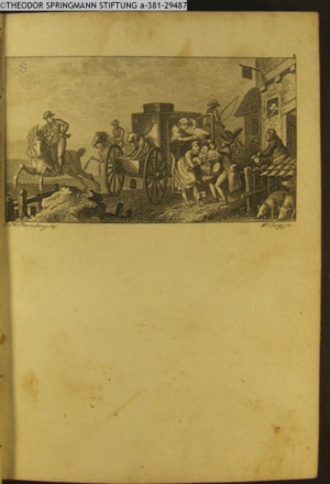 Nummerierung III.; auszufaltende kol. Illustration zu »Abentheuerliche Wanderung von Weimar nach Carlsbad« von St. Schütze