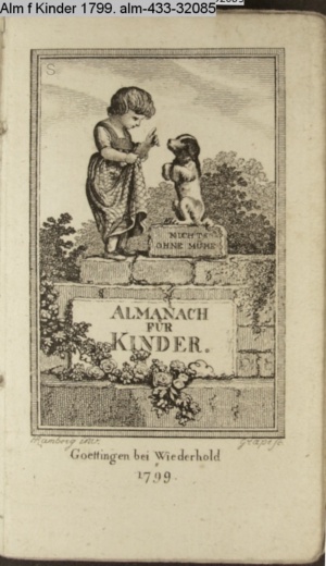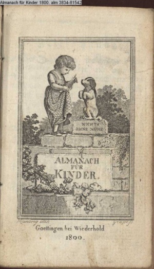 NICHTS / OHNE MÜHE. / ALMANACH / FÜR / KINDER. / Goettingen bei Wiederhold / 1799