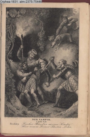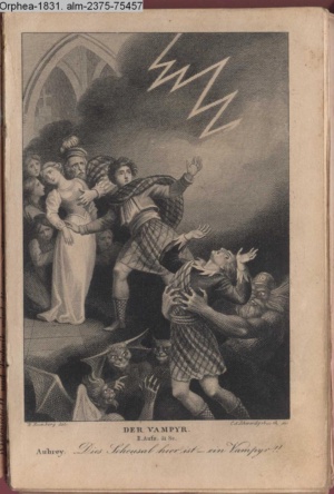 DER VAMPYR. / II. Aufz. 21. Sc. Aubrey. Dies Scheusal hier ist - ein Vampyr!!