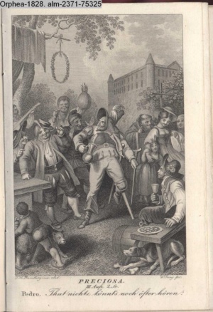 DER VAMPYR. / II. Aufz. 19. Sc. / Davenaut. Heinweg mit ihm! trent sie! er ist von Sinnen!