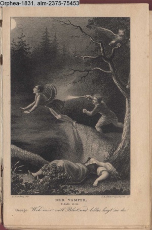 DER VAMPYR. / II. Aufz. 15. Sc. / George. Weh mir! voll Blut und leblos liegt sie da!
